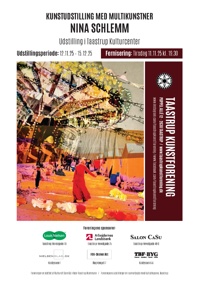 Taastrup Kunstforening Adr: Poppel Alle 12, 2630 Taastrup Mail: taastrupkunstforening@gmail.com CVR: 32003966