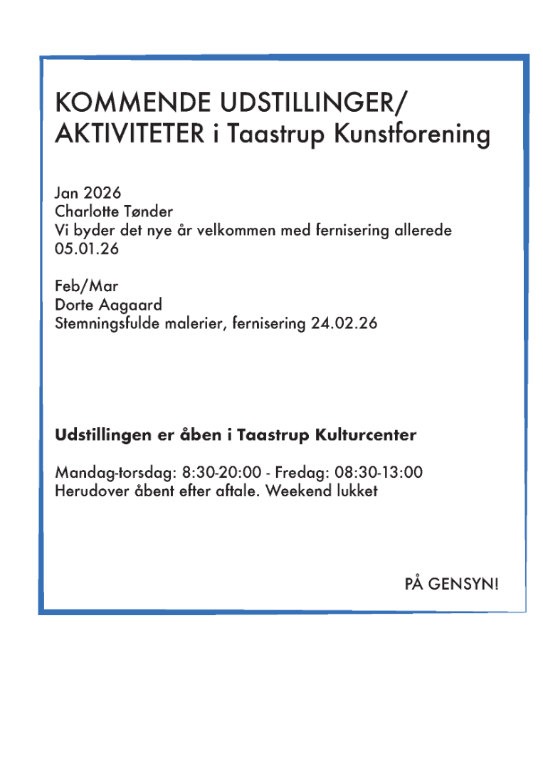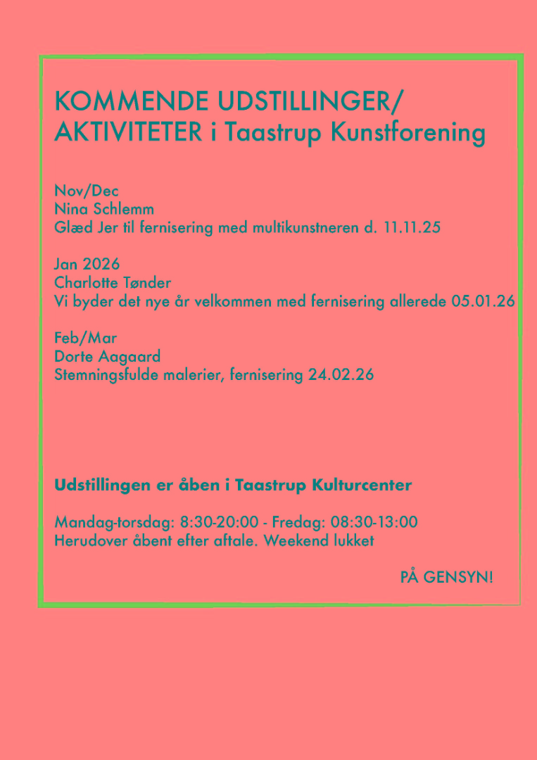 KOMMENDE ARRANGEMENTER I TAASTRUP KUNSTFORENING: